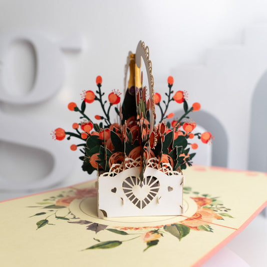 Rose Basket and Wine Pop-Up Card
